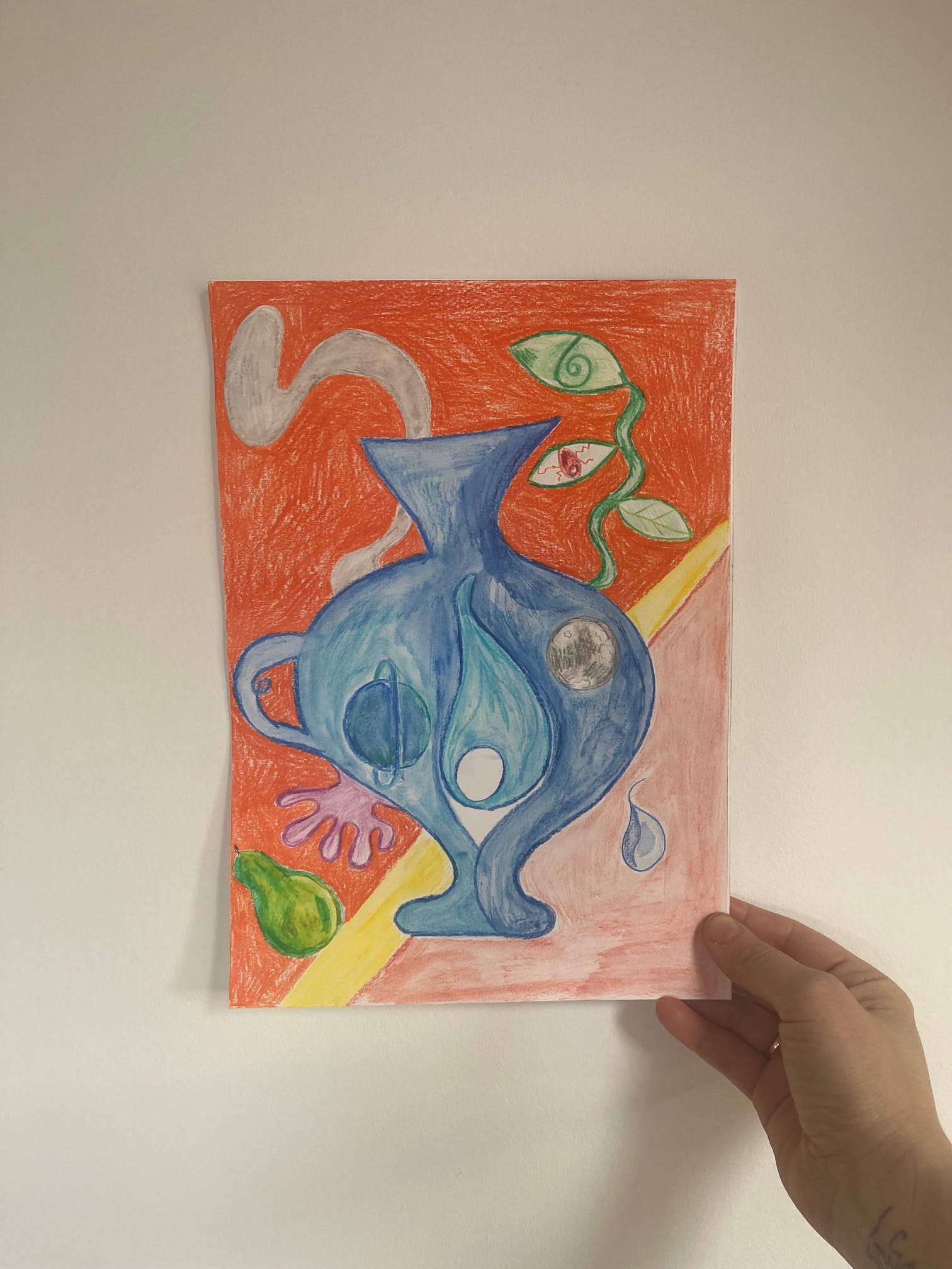 In these pieces, I keep coming back to the vessel and the fruit as bodies — basically very polite containers pretending they’re not absolutely full of feelings. I love the drama of it all: the inside versus the outside, the composed exterior versus whatever is sloshing around internally. What are they holding? What’s about to spill? What’s quietly sprouting in there? And… is something watching us back?